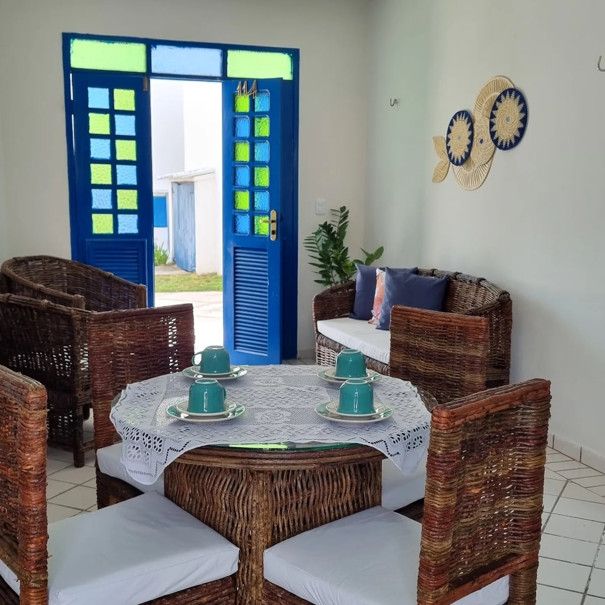Apartamento en la planta baja de nuestra Posada Vila Beija-flor, para hasta 5 personas con cocina nueva y completa. Vistas para el mar y dunas. Cuarto con cama de matrimonio y otra de soltero y dos camas en la sala. TV plana 21", Netflix, ventiladores, caja de seguridad, ducha caliente, wi fi, hamaca en la terraza. Comedor frente al jardin con vistas hacia el mar.