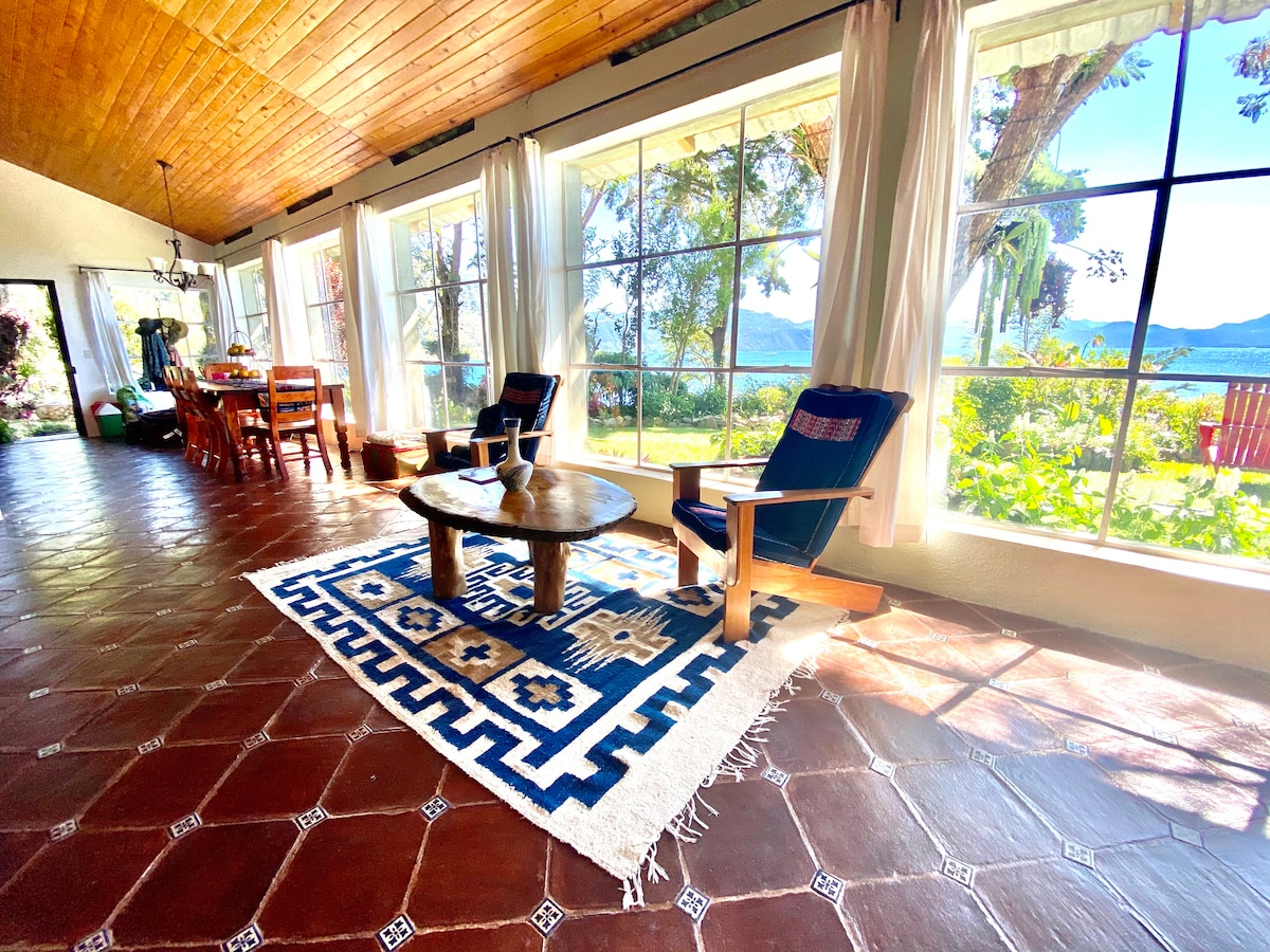 Casa Serenidad is a lakefront cottage with lush gardens secluded enough to be alone with nature, but within 3-5 minutes away from Isla Verde, a hotel with a restaurant that offers delicious food, and it’s usually open to the public. The property is only accessible by boat but its approx. a 15 minute walk to the town of Santa Cruz, and very close to kayak and paddle board rentals. We are about a 10 minute boat ride to Panajachel.