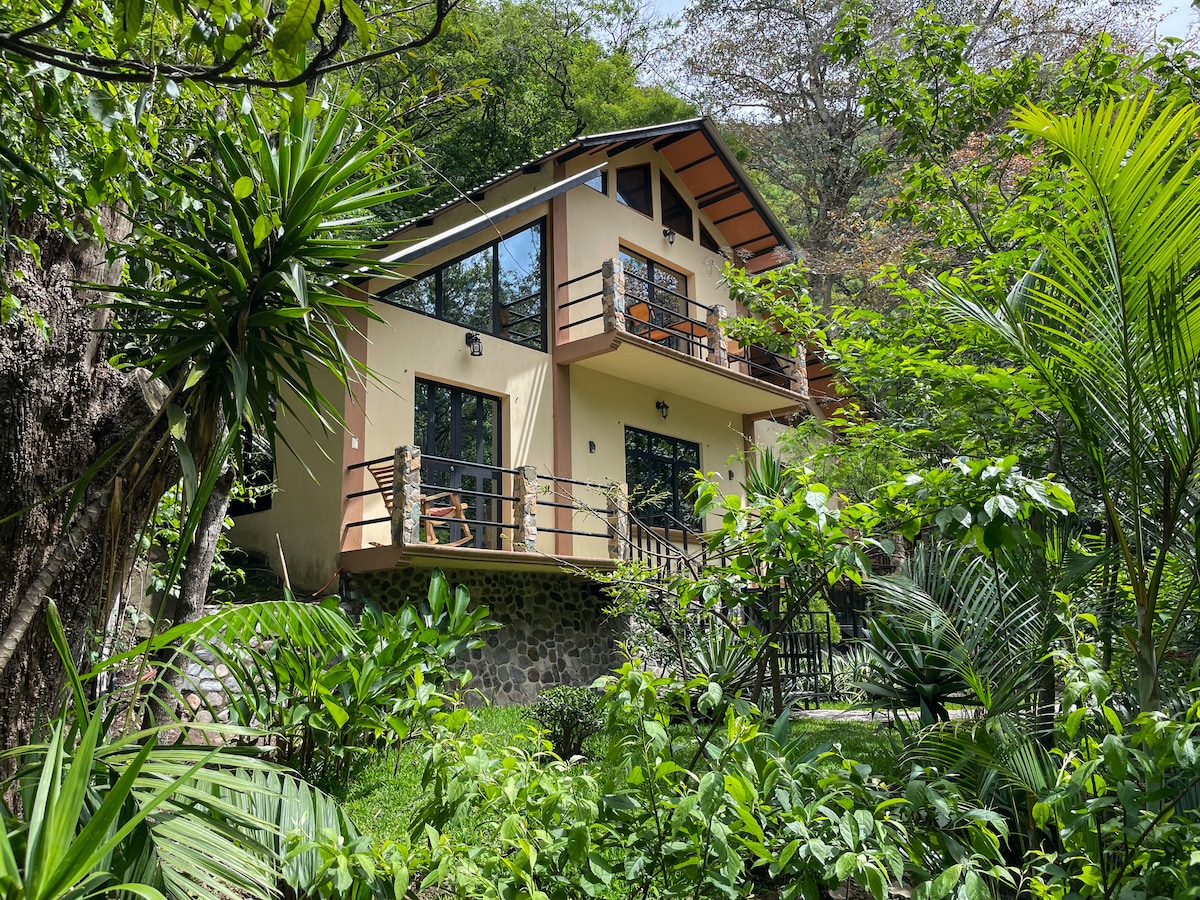 Villa Ónix Un refugio céntrico recientemente construido en una montaña, 180 °grados de increíbles vistas panorámicas desde cualquiera de sus esquinas. Un diseño totalmente expansivo, una cocina bien equipada abierta entre un comedor y una sala aseguraran el confort de tu descanso y convivencia. Un amplio deck con un Jacuzzi infinito, perfectamente situado con la mejor vista, te hará sentir que eres parte del paisaje. Al llegar al área de parqueo debemos subir 75 escalones para llegar a la villa.