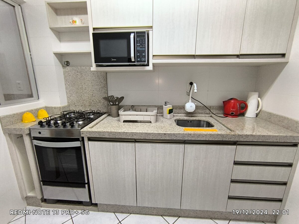 NUEVO APARTAMENTO Lleva a toda la familia a la playa y alójate con un montón de espacio para divertirse y relajarse. ¡Hay 3 suites y un entorno ampliado con salas de estar, cocina y un gran balcón con barbacoa! Cocina totalmente equipada. Todas las habitaciones tienen aire acondicionado. El Ap tiene 3 espacios de estacionamiento disponibles. Ubicado cerca de tiendas, supermercado, farmacias, restaurantes y por supuesto la playa... a 400 metros del mar, camina tranquilamente. Ya tiene un kit de playa disponible.