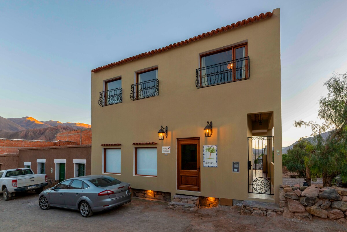 Nos esforzamos en cada detalle de la construcción, desde los materiales a los cuadros y el equipamiento. La orientamos hacia el cerro de 7 colores para que la vista desde el sillón te sumerja las montañas majestuosas de la Quebrada de Humahuaca. La pusimos entre viñedos, para que inspiren los sentidos cuando pruebes nuestros vinos. La acercamos al cerro para que ofrezca una experiencia relajada, bucólica y única. Los esperamos para disfrutarlas y ayudarnos a completar su descripción.