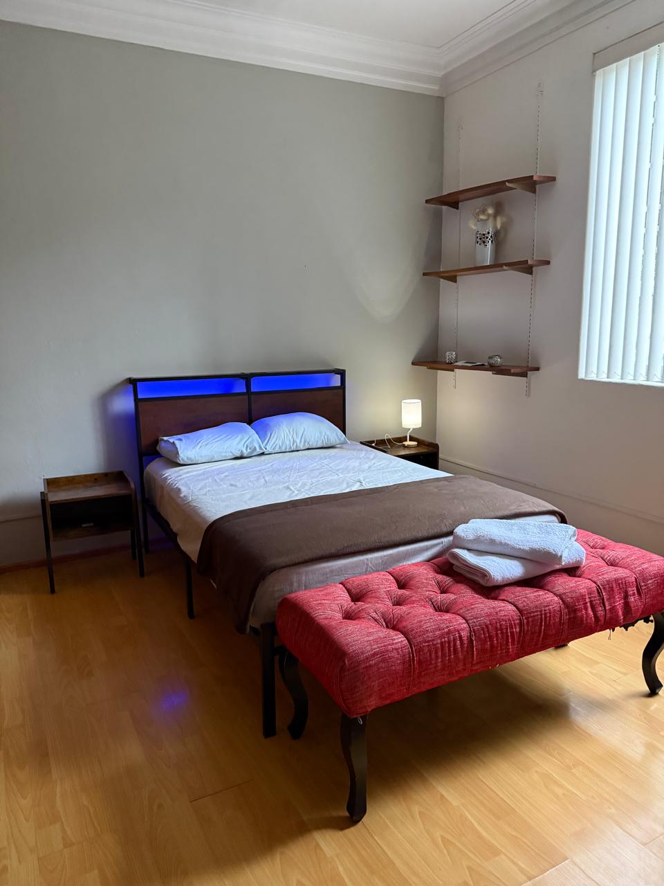 La recamara está en el segundo piso, y esta ubicada a unos pasos de centros comerciales, restaurantes, bares, parques y un poco mas lejos entre caminando y en bici el Tec de Monterrey, UVM, y la zona de hospitales Cardiologia, Nutrición, tenemos a pie avenidas principales donde pasa transporte publico económico hacia la UNAM, Xochimilco, Coyoacan, Centro Histórico con un solo transporte de punto a punto. cerca la central camionera sur hacia Cuernavaca y Acapulco.