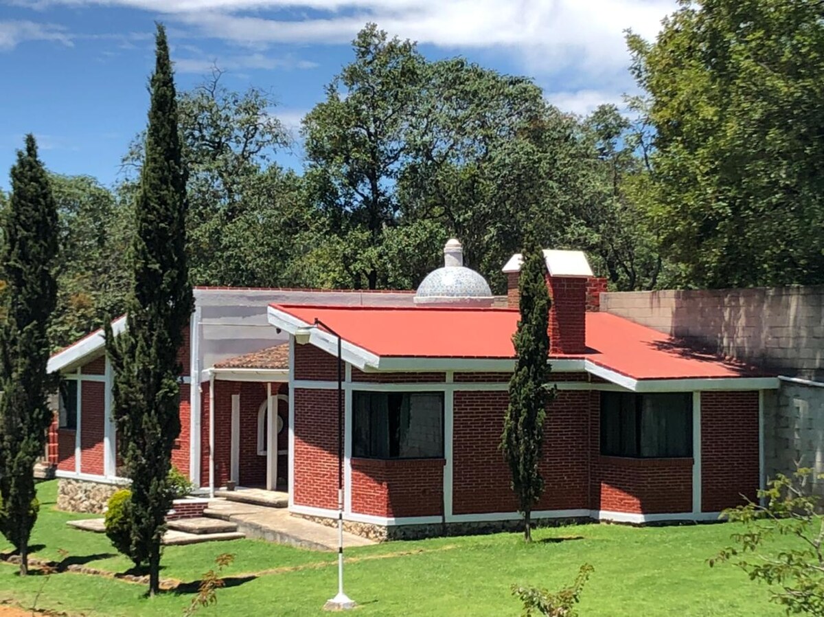 Quinta colonial para disfrutar con la familia con grandes espacios abiertos que ofrecen seguridad y limpieza durante esta pandemia. Confortable casa que conjuga lo rústico con lo moderno y la tranquilidad de la naturaleza. Decorada con artesanía mexicana y poblana. 1,500 metros de jardín, WI-Fi, 4 tv's con cable Localizada a 5 min caminando del centro de Zacatlán.