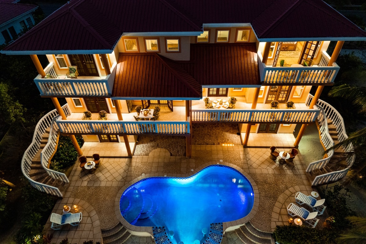 ¡TARIFAS mensuales de temporada BAJA! Totalmente abastecido. ¡Reseñas Rave! ¡Esta casa de playa de estilo encantador está orientada a una pareja romántica y llena de características adicionales! Respaldo solar. Diseñado con techos altos, maderas exóticas, obras de arte, paquete de iluminación de alta gama y muebles artesanales locales. Una sensación de cabaña de playa, frente al OCÉANO/LAGUNA en su propio canal con magníficas puestas de sol, aves, mariposas. Grandes puertas correderas que nunca bloquean 180 vistas del océano Caribe y la laguna, saltando rayas. Las brisas DISFRUTAN