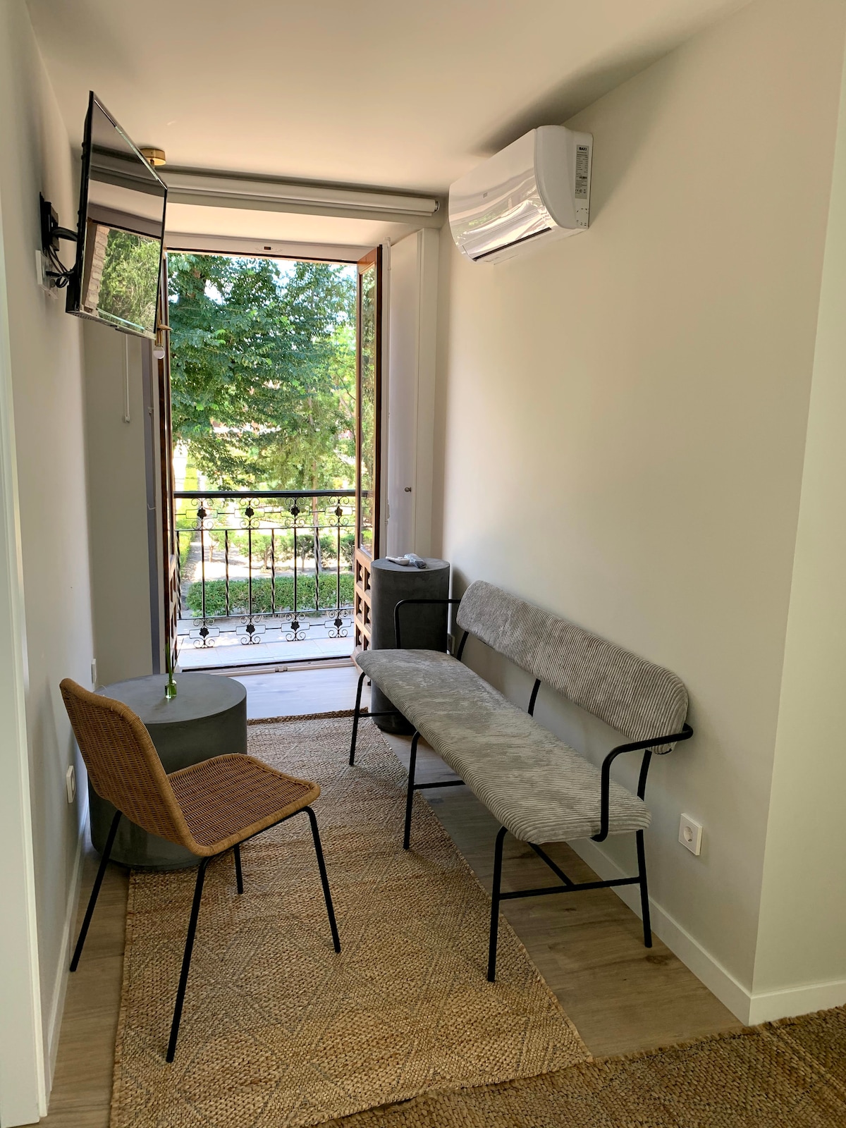 Suite privada exterior de 3 habitaciones con baño privado, recién reformada. Ideal para seis personas, ya que consta de dos dormitorios independientes con cama de matrimonio (queen-size) y dormitorio independiente con dos camas individuales. Está equipado con toallas, gel, champú, secador, armario abierto, Smart TV, mini nevera, tres balcones, microondas y máquina de café Dolce gusto. Ideal para disfrutar de una auténtica experiencia Toledana junto al barrio judío.