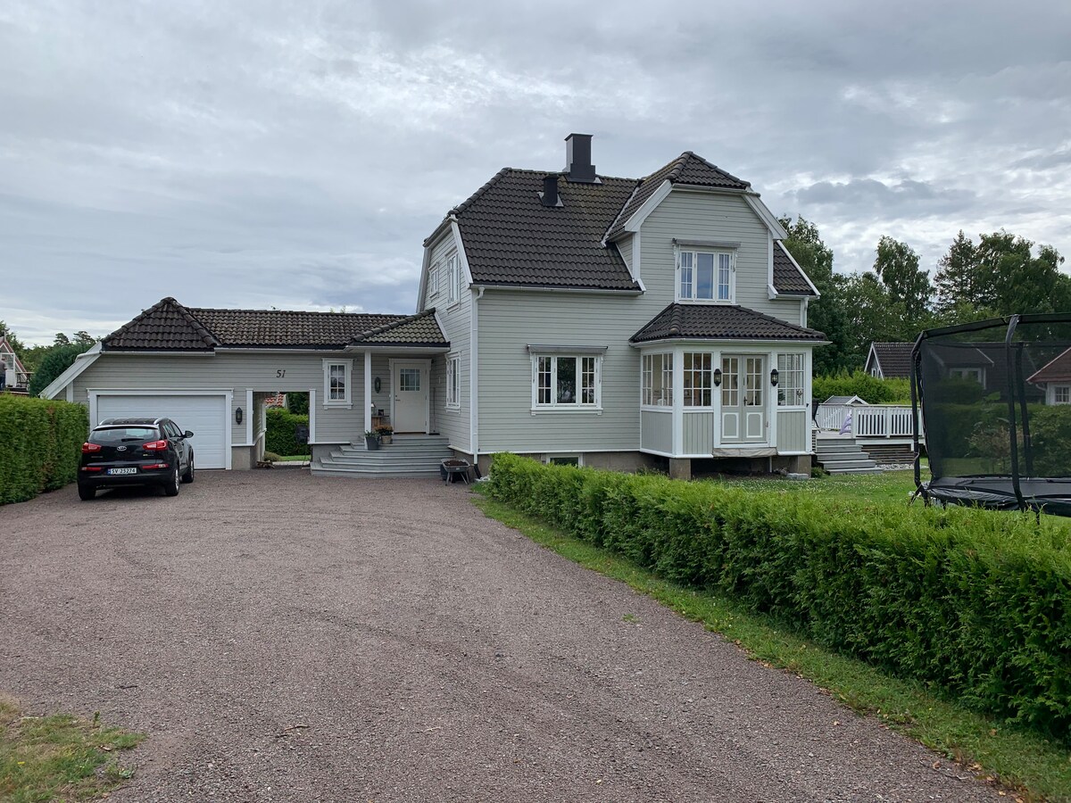 Casa bien cuidada en un barrio tranquilo con un buen ambiente y en las inmediaciones del centro de la ciudad, el lago y el bosque, playas, campos de golf y rutas de senderismo. A solo 10 minutos a pie del embarcadero y del centro de la ciudad. 3 dormitorios y una gran terraza alrededor de la casa con parrilla de gas y muebles de jardín. En la sala de estar hay un televisor de 75 pulgadas con varios servicios de streaming y la mayoría de los canales, un gran sofá y una chimenea recién construida. En las habitaciones duermes en cómodas camas dobles de buena calidad. Cocina nueva con todos los utensilios necesarios.