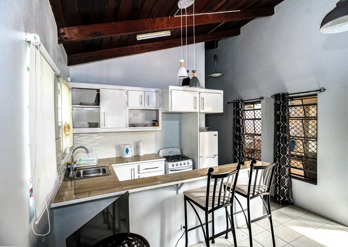Apartamento tipo estudio, espacioso, recién renovado y con aire acondicionado, convenientemente ubicado en Dover, a un tiro de piedra del centro vacacional Sandals y de la popular playa de Dover. Hay una casa adjunta de 3 dormitorios y 2 baños que se puede alquilar por separado o junto con el estudio. Todos los alojamientos son nuevos y la decoración es moderna y tropical. Hay aparcamiento disponible y un jardín trasero sombreado para relajarse al aire libre. Estás a solo un paseo de varios bares, restaurantes, tiendas de comestibles y una concurrida ruta de autobuses.