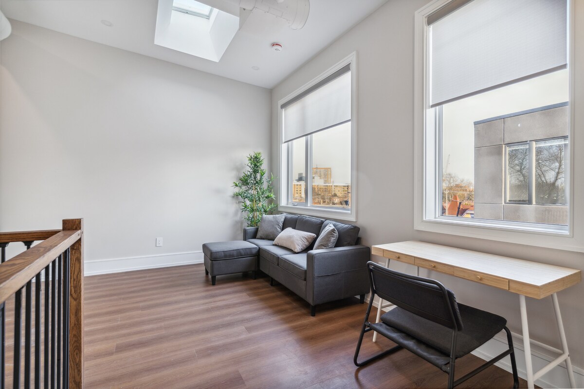 Bienvenido a Queen's Griffen, ubicado en el corazón de Parkdale, a pocos pasos de Liberty Village y Trinity Bellwoods. Este loft dúplex boutique de 2 dormitorios ofrece un amplio espacio, comodidad y luz natural. Una cocina totalmente equipada con estufa de gas invita a tu lado culinario, mientras que la chimenea crea el ambiente en las noches de invierno. Las lavadoras de tamaño completo están convenientemente ubicadas en la suite. Sube al patio privado de la azotea para relajarte y disfrutar de las vistas panorámicas de la ciudad.