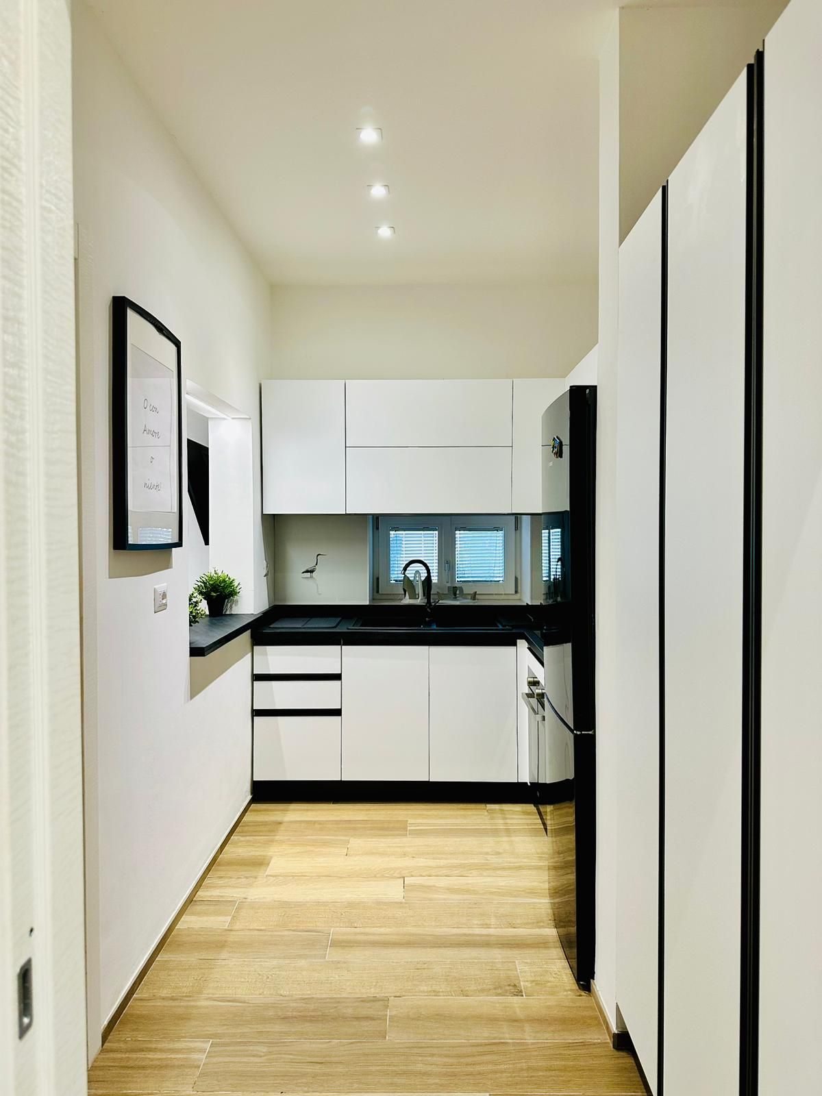 Design è di 80 mq dall'estetica minimalista con ingresso living, zona tv smart, lettura. La camera da letto dispone del secondo bagno. La casa, luminosa in tutti i suoi ambienti, si affaccia su un grazioso cortiletto arredato con tavolo e sedie. Gli ospiti potranno inoltre accedere alla terrazza/solarium sul tetto, disponibile dal 01/05 al 31/10. Per soggiorni di 28/30 notti si richiede la quota di euro 120 per i consumi e cambio biancheria in Inverno, euro 90 in Estate.