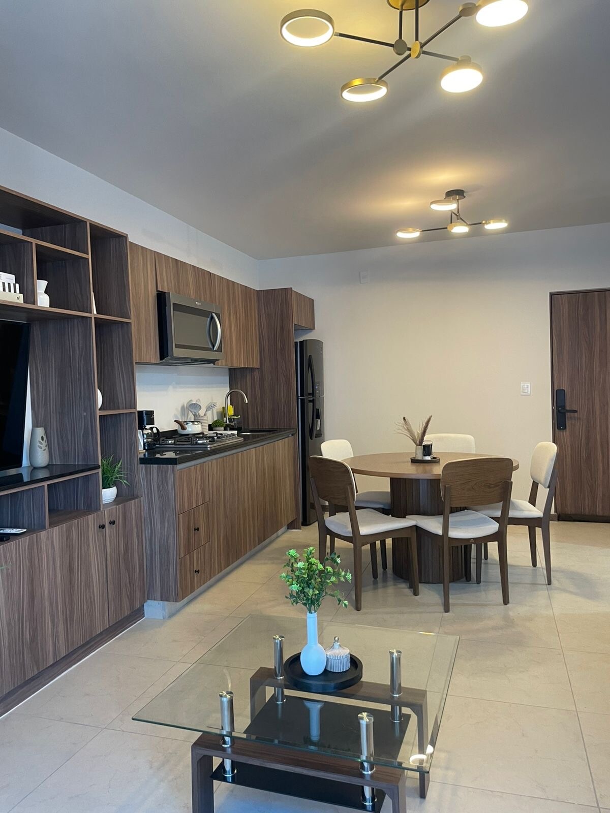 Disfruta de este alojamiento céntrico.Disfruta este moderno departamento de 2 habitaciones y 2 baños, perfecto para viajes de trabajo o descanso. Ubicado sobre una plaza comercial, tendrás restaurantes, cafés y tiendas al alcance. El espacio cuenta con cocina totalmente equipada, 2 televisores Smart TV, decoración cálida y estilo contemporáneo. Además, disfruta de amenidades exclusivas: alberca, gimnasio y seguridad 24/7. Ideal para quienes buscan comodidad, ubicación y diseño en Torreón.