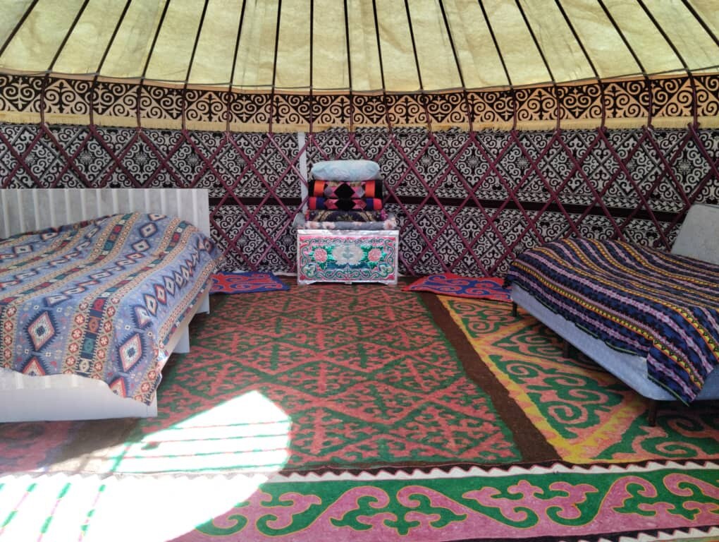 Yurta tradicional kirguisa, situada en la montaña Gealogia en Barskoon. Hay muchos senderos para caminar y excursiones a los que se accede desde dentro de la propiedad. La yurta es espaciosa, con una cama tamaño queen y dos individuales con su propio inodoro. La propiedad está rodeada de vistas a la montaña y también está a poca distancia a pie de todos los servicios principales de la ciudad. La cocina tradicional kirguisa es parte de la experiencia y está disponible para desayunar, almorzar y cenar. Hay taxis disponibles regularmente para acceder a los lugares de interés turístico.