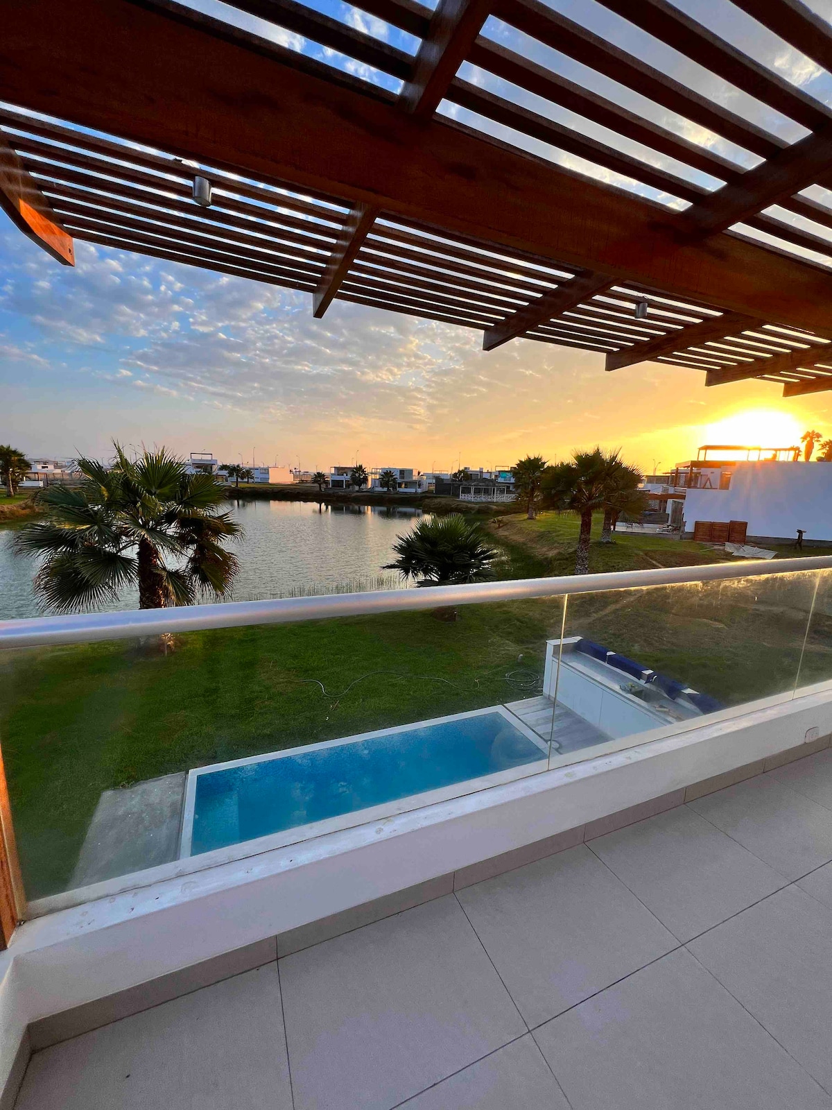 Casa de campo frente al mar(km 84.4 Panamericana Sur). 1000m² de áreas verdes, piscina temperada y parrilla. 6 dormitorios (3 en suite): 5 con 2 camas dobles, 1 con cama doble y cuna; hasta 20 personas. Mesa de tenis, sapito, internet y TV. Condominio con laguna natural,ideal para birdwatching,juegos,market,seguridad 24/7(restaurante verano).Delivery Wong/Vivanda. Acceso directo a playa(olas fuertes). A 5 min de Totoritas y La Ensenada, a 10 del Boulevard de Asia y a 30 de Calango y Azpitia.