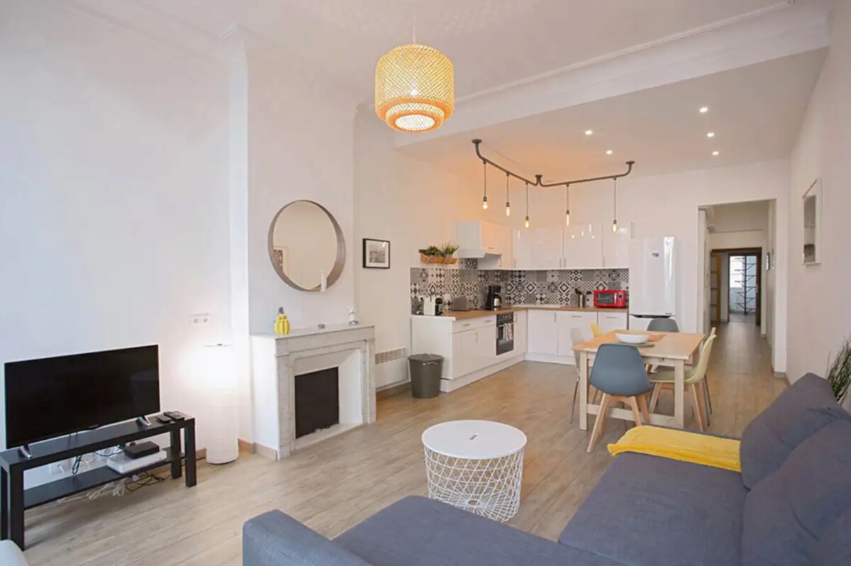 Apartamento T2 de 50 m2, en el segundo piso de un edificio antiguo en el corazón del centro de la ciudad, en zona peatonal, en Tolón. ¡Barrio animado y agradable, bares de vinos, restaurantes, tiendas y comercios, galerías, al pie del edificio! Consta de una hermosa sala de estar, sala de estar con 2 sofás (uno de ellos cama) y comedor, cocina equipada y un dormitorio grande (cama de 160 cm) con baño (bañera) y aseo. Estará a 10 minutos a pie de la estación de tren, a 2 minutos de los autobuses y barcos