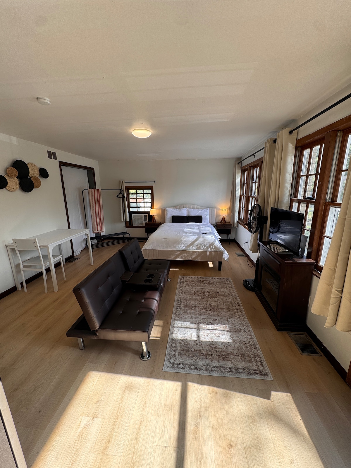 A cozy retreat tucked away in our backyard designed especially for short term & vacation rentals. Perfect for solo travelers or couples, this thoughtfully prepared space includes a comfy queen bed, pull out futon, stocked kitchenette, and peaceful porch surrounded by nature. Enjoy modern comforts in a serene, minimalist setting—just minutes from local dining, Bethel College, and I-135. Experience tiny living with big charm at The Hidden Den!