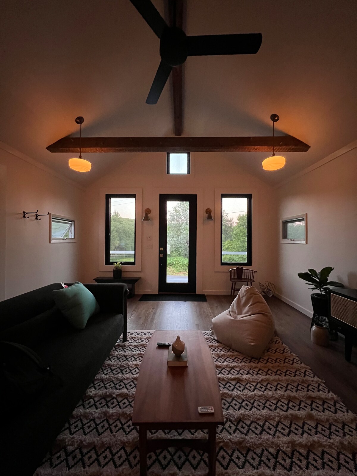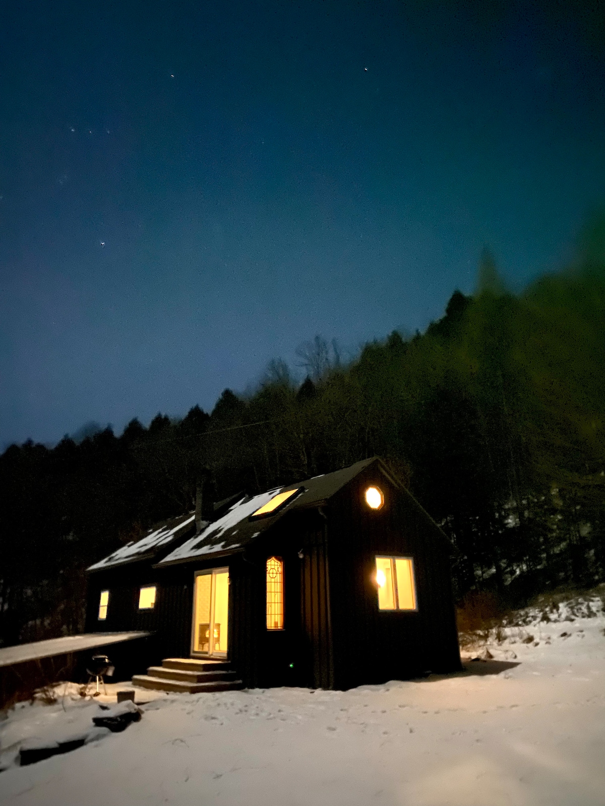 Creekside of the moon A-frame glamp. Float, fish and play in the Catskills. Glamp on the Charlotte Creek in a newly built modern tiny a-frame. Sleep under the full moon. A giant moon light hangs over the bed(s) with a stunning reflection in the window at night over the creekview. Perfect for a romantic getaway, fishing trip, or glamping spot in the Catskills. Close to Cooperstown, NY IG @aframe_moon