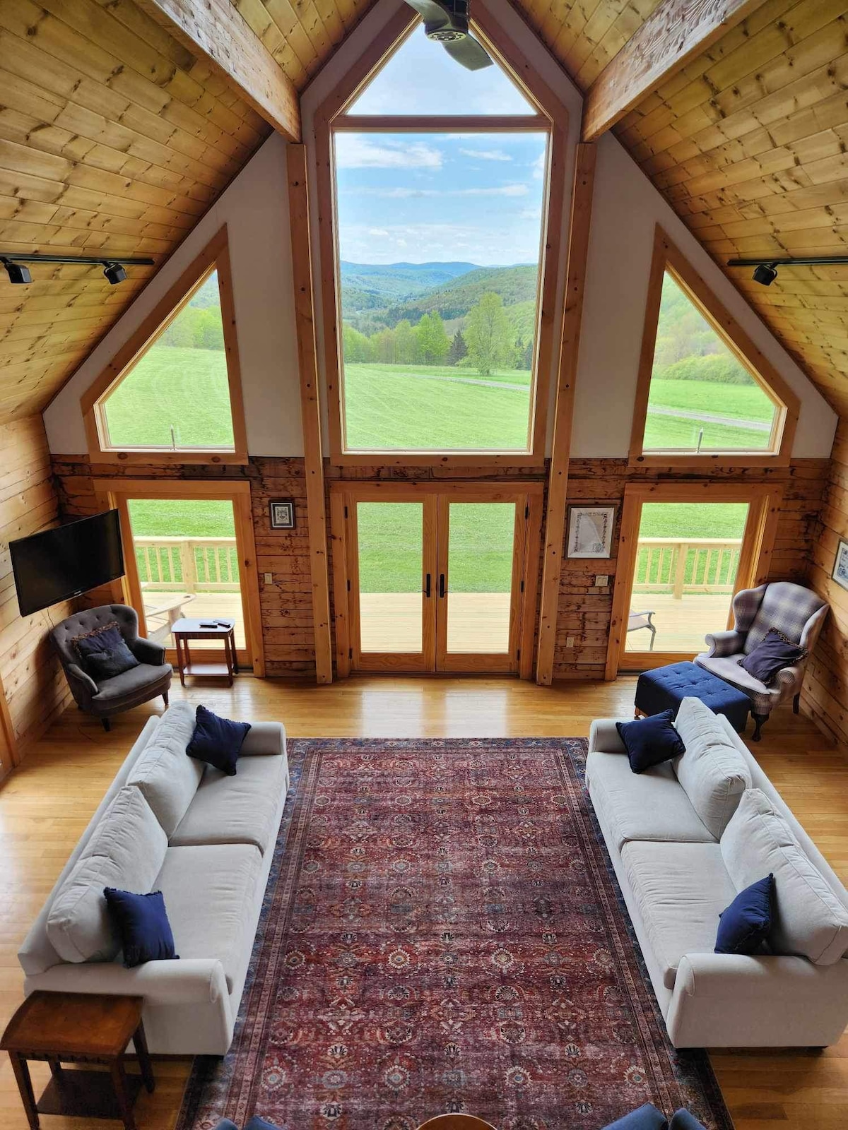 If you are looking for a secluded place to escape, you've found it. This Private Log Cabin is on 47 Acres with a spectacular view down the valley in the Catskill Mountains. Just outside my home town of Delhi, 18 minutes to Maple Shade Farm (it's a great place to get ready fo a wedding), 25 minutes to Cooperstown All Star Village and 42 minutes to Cooperstown's Dreams Park. I hope you find it as relaxing as I do.