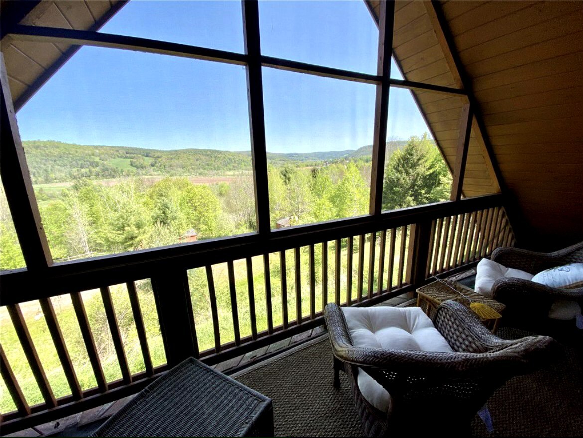 Retreat to this Unique, Private Cabin on 14 private acres. Enjoy the vast mountain views and endless stars from the cozy front porch or the screened private balcony off the master bedroom. Enjoy the meditation chapel and heated guest house. Eat from apple and peach trees. Essentials include pellet stove, washer/dryer, fire pit BBQ and all essential appliances. 13 mins to the Cooperstown Baseball All Star Village. 2 miles to the Historic Village of Franklin. Vibrant Oneonta is 12 mins away.