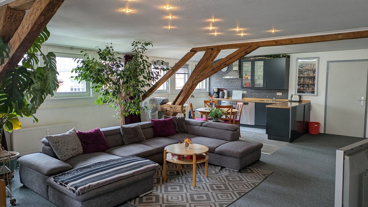 Unsere Ferienwohnung "Mühlenlounge" verdient ihren Namen zurecht. Wir leben in einer alten Ölmühle, fußweit von dem ansprechenden Stadtkern Haslachs entfernt, in dem das erhaltene Fachwerk beeindruckt. Die Mühlenlounge hat Loftcharakter und viele Originale aus der Zeit der Ölmühle wurden erhalten. Dennoch ist der Stand der Technik in dieser Ferienwohnung auf einem modernen Stand, wie TV, Küchenausstattung, Kaffeeautomat, WLAN, usw.