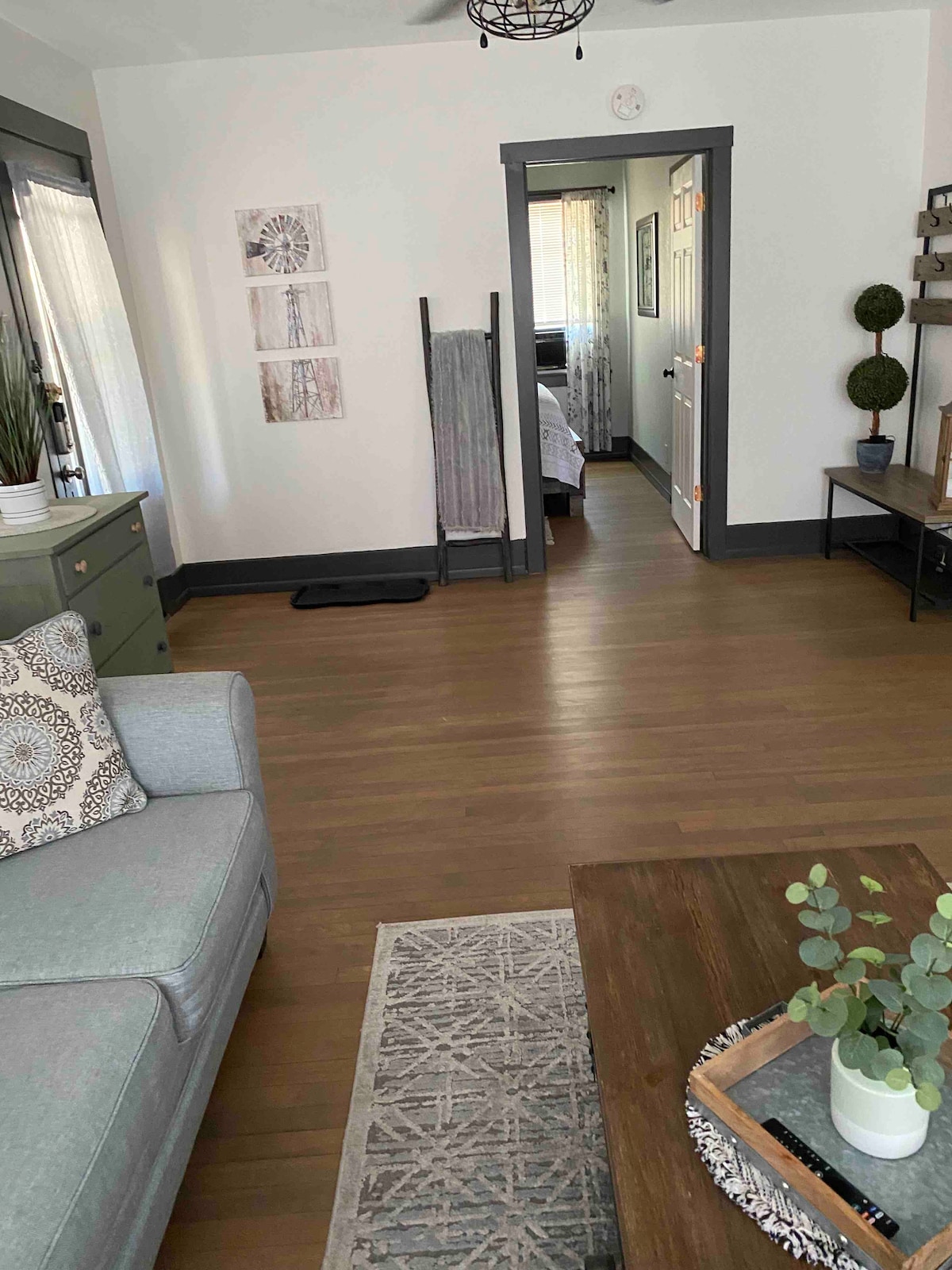 Updated, sunny, two bedroom house in beautiful La Veta, Colorado. You are a short two block walk from local shops like Charlies Market, and a 15 minute drive to the town of Cuchara. Large open kitchen and living are with dining table and Roku TV. Master bedroom with King bed, love seat, dresser, closet, smart tv. Master bath with tub. Bedroom two has a full bed with an optional pull out twin trundle. Bathroom two can be accessed by second bedroom or main living space and has a shower.