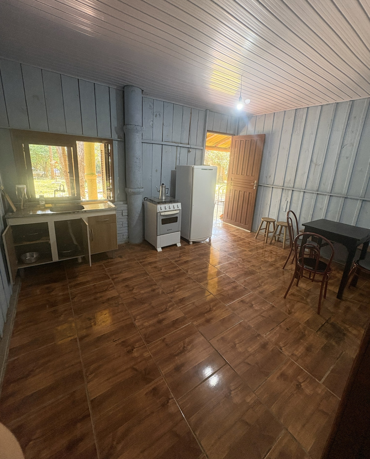 •Chalet con sala de estar, cocina, baño, 2 dormitorios, ambos con cama doble. •Lavarropas. • Toalla facial ( sin toalla de baño) •Ropa de cama - Cocina completa con estufa, licuadora, freidora de aire, ollas, cubiertos, vasos, tazas, platos, platos para hornear, cafetera, horno eléctrico. - Secador de pelo y plancha. •Pastelería, farmacia y supermercado a 1 km de Chalé. Amplio espacio para que disfrutes con tu familia en esta tranquila casa.