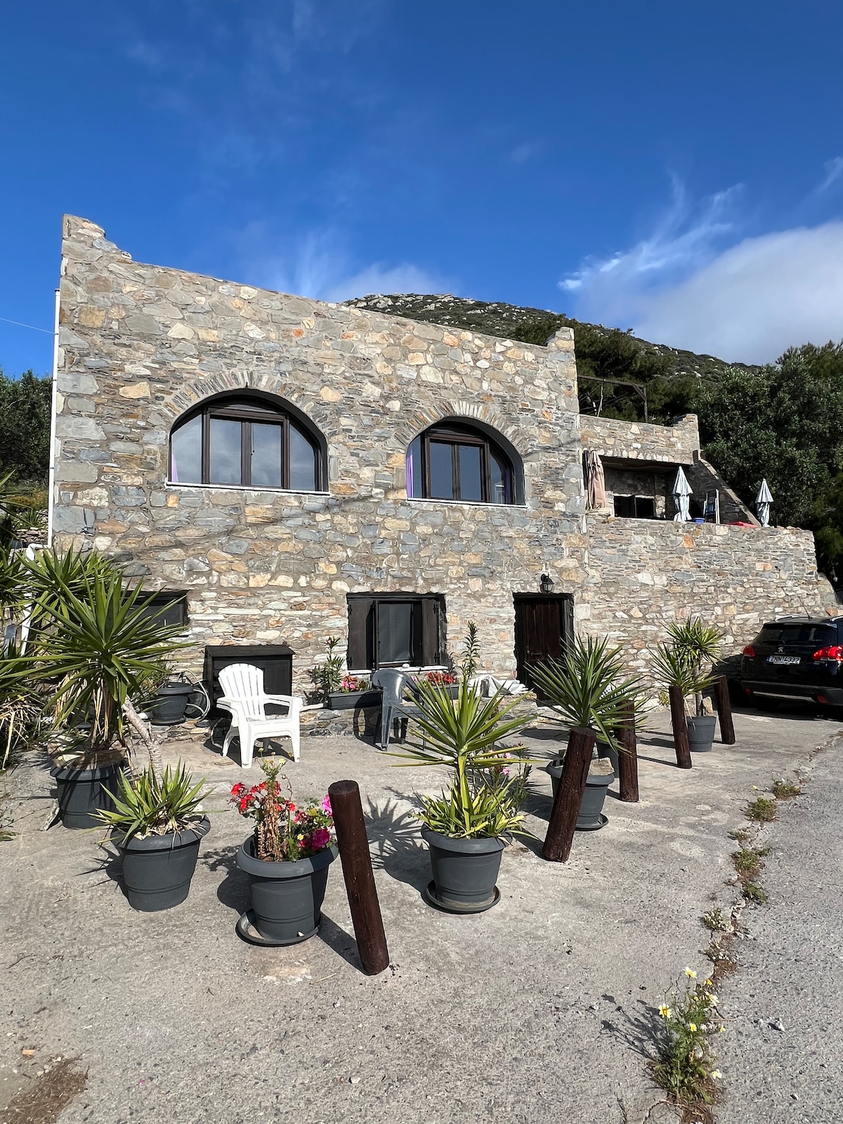 A solo 1,5 km de la playa de Ampelos, este refugio aislado se encuentra en lo alto de una colina tranquila cerca del pueblo tradicional de Lagia, que ofrece infinitas vistas panorámicas y paisajes cautivadores. A un tiro de piedra de aguas cristalinas, pueblos encantadores y una belleza natural impresionante, ofrece todo lo necesario para una escapada verdaderamente rejuvenecedora. Apto para mascotas y sereno, cuenta con una acogedora chimenea para noches relajantes, combinando aventura con tranquilidad Zen. ¡Wi-Fi y estacionamiento gratuitos en las instalaciones!