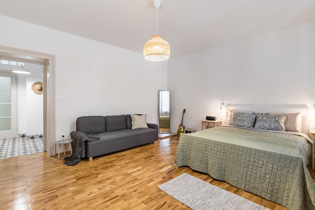 Amplio departamento de 2 dormitorios y 2 baños en el vibrante corazón de Split. Incluye una bañera de hidromasaje, 2 duchas, 2 aires acondicionados, cocina completa y comedor dedicado, un televisor inteligente de 50" 4k con Netflix en la sala de estar y hermosos pisos de madera en todas partes para una sensación cálida y lujosa. El generoso espacio habitable, tres encantadores balcones y un acogedor rincón de la oficina hacen de este refugio de 140 m2 un verdadero refugio cómodo. Estacionamiento gratuito en la calle en la zona. El barrio es muy seguro.