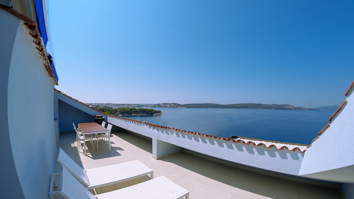 Royal is new, modern & luxury renovated apartment with jacuzzi, 50 meters away from beach. Has 50 square meters and 30 square meters terrace. Comes with 2 bedrooms, a living room, a fully eqipped kitchen with a dining area, bathroom with great shower, barbecue facilities, garage(1 car) , flat-screen TV in every room and free wi-fi. Offers a big terrace with open sea view on surrounding islands. Diving can be enjoyed nearbly. Trogir is 5 km away and Split airport 8 km from the acommodation.
