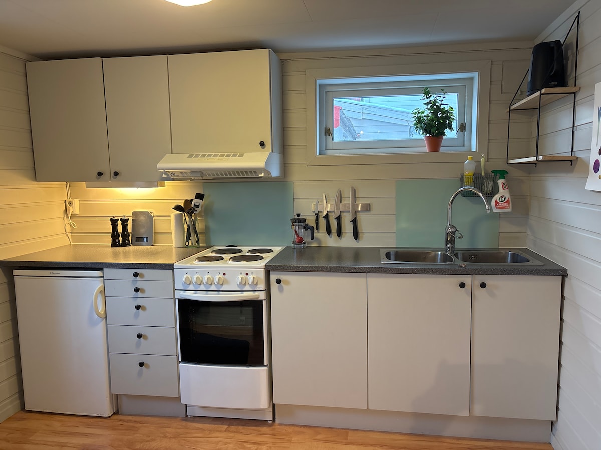 Todo incluido. Toalla, etc. Agua potable fresca y fría del grifo. A 1 minuto de la parada de autobús. A 5 minutos en autobús del centro de la ciudad. A 15 minutos a pie del centro de la ciudad. Por acuerdo y tarifa de 300 NOK posibilidad de usar sauna con baño de nieve. Una cama doble de 120 metros de ancho y la otra de 140. Para reservaciones después del 24.11.25. Una comida de bacalao o una torta de pescado gratis, si lo deseas, para estancias de más de tres días.
