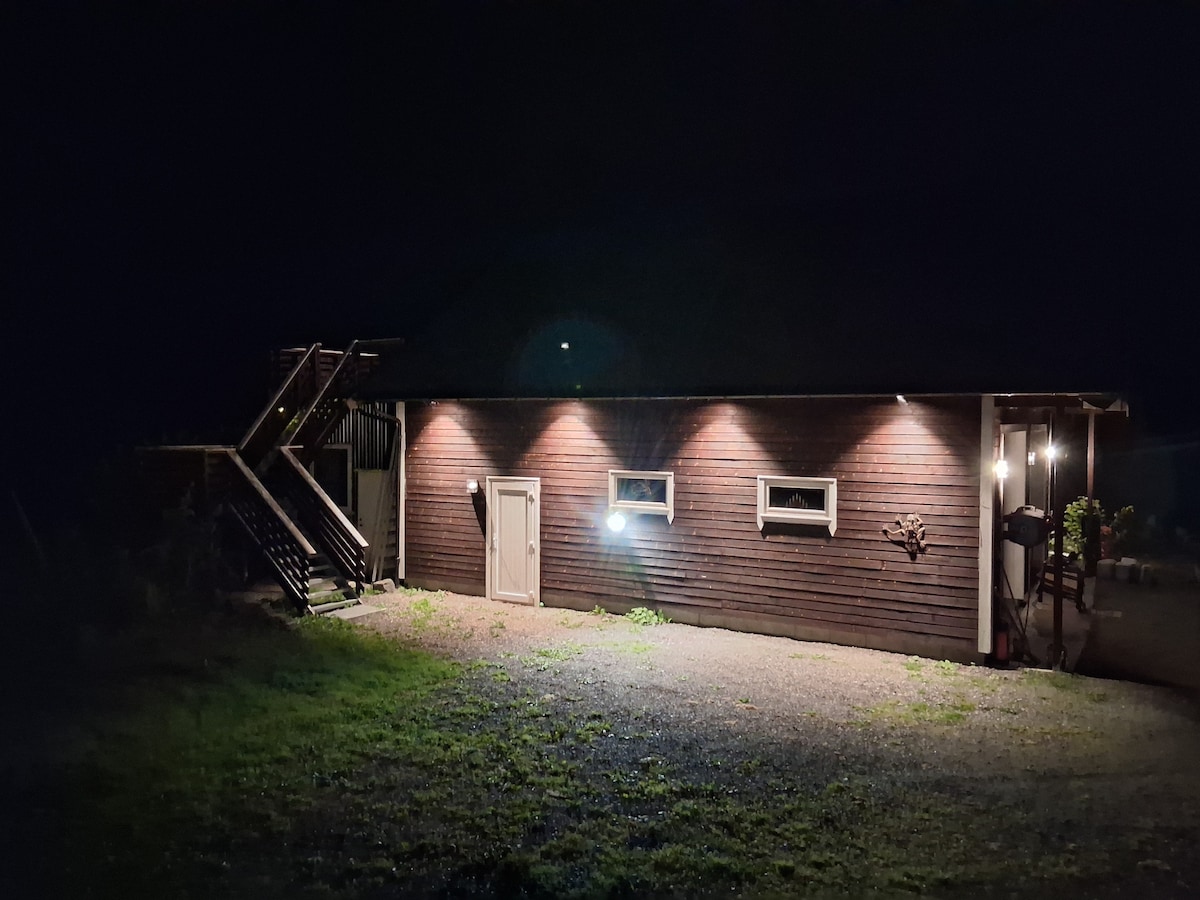 Hay mucho espacio de estacionamiento. Acceso fácil. No hay colinas. Tómate un descanso y relájate en paz alrededores en la parte superior de nuestro garaje en un apartamento acogedor separado. El apartamento está detrás de la casa. Sigue el camino detrás de la casa y verás el garaje. Cama doble en el dormitorio. Sofá grande/sofá cama en la sala de estar. Innumerables oportunidades para practicar senderismo. Aquí puedes disfrutar de la naturaleza. Cerca de la tienda de conveniencia, cafetería, puesto y otras oportunidades para bañarse. (agua dulce)