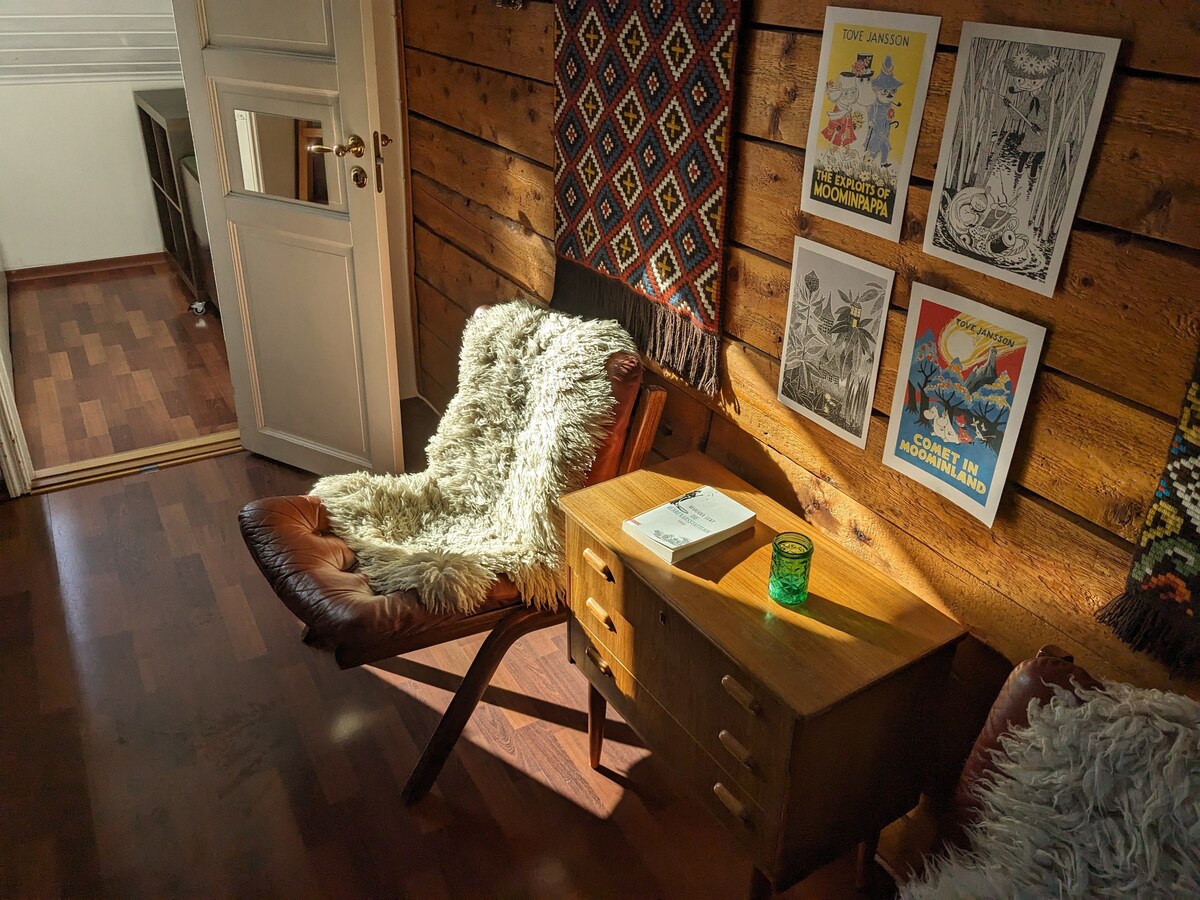 ¡Apartamento loft característico y acogedor! A solo 10 minutos en bicicleta/30 minutos a pie del centro de la ciudad. También el tranvía y el autobús salen de la estación de Breidablikk (a 5 minutos a pie) cada 10-15 minutos. Dormitorio principal con cama de matrimonio. La oficina cuenta con un lugar de trabajo y un sofá cama con capacidad para 2 personas. Hay un colchón en el loft que también puede alojar a 1 persona (tendrás que subir una escalera para llegar allí). Tengo 3 edredones. El apartamento está en una zona tranquila, pero bastante cerca de la ciudad, ¡y las vistas desde aquí son increíbles!
