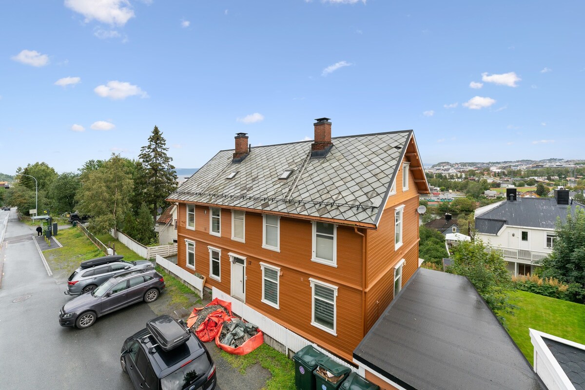 Apartamento de 3 habitaciones con ubicación céntrica en Trondheim. El apartamento está en buenas condiciones, se encuentra en la 5ª planta, no hay ascensor. A poca distancia a pie del Hospital Olavs Hospital, NTNU, estadio Lerkendal. Instalaciones como red inalámbrica, TV, secador de pelo, lavadora con secadora y plancha. Terraza privada en la azotea con mucho sol y vistas a la ciudad y al mar. 2 dormitorios con camas de matrimonio y una cuna disponible. Es posible dormir en el altillo, con colchones adicionales disponibles.