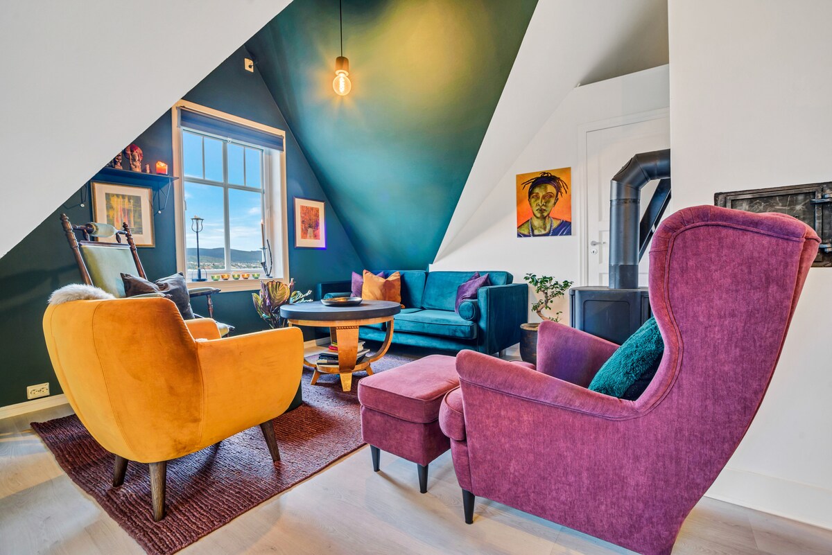 Comience su próxima aventura en nuestro pintoresco departamento en la azotea de 3 habitaciones en el corazón de la ciudad. Aquí te recibirán con increíbles vistas de Kristiansund. Está totalmente equipado para ser tu hogar lejos de casa. La cocina está totalmente equipada con electrodomésticos y todo lo necesario para el café cada mañana! Disfrute de sus comidas juntos alrededor de la mesa del comedor, o relájese en el cómodo espacio que incluye un televisor de pantalla plana. Aparcamiento privado gratuito 1 se encuentra detrás del edificio. Esperamos verte pronto.