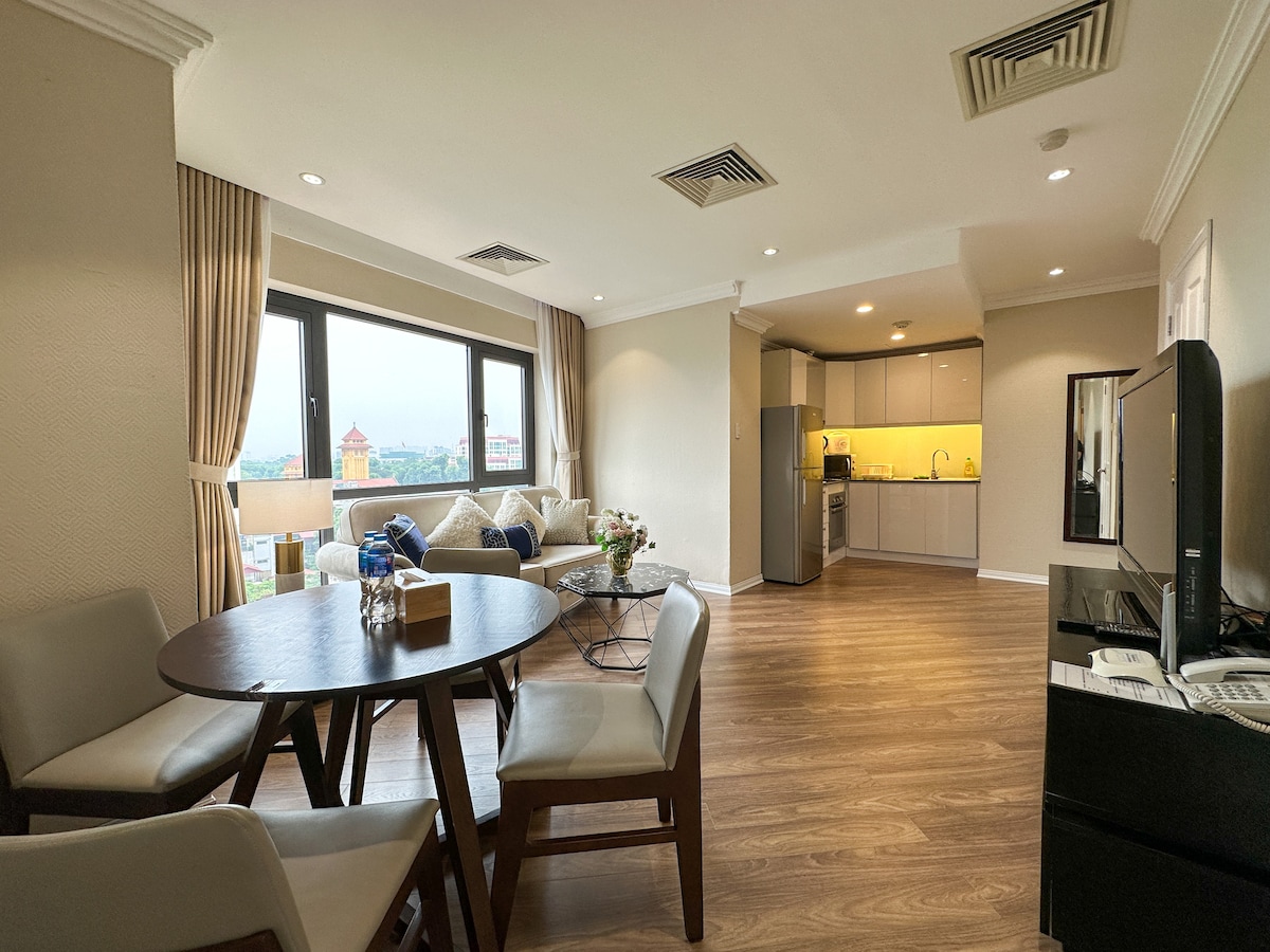 Experimenta el lujo asequible en nuestro apartamento con todos los servicios en el corazón de Hanói. A los huéspedes les encanta nuestro entorno tranquilo del lago, pero estamos un poco lejos del ajetreo y ajetreo agitado del encantador casco antiguo. Disfruta de delicias gastronómicas en restaurantes cercanos y servicios de primera categoría. Nuestros servicios incluyen servicio de limpieza, seguridad 24/7, habitación exclusiva para niños, gimnasio bien equipado y piscina. Descubre una relación calidad-precio excepcional en este entorno notable.