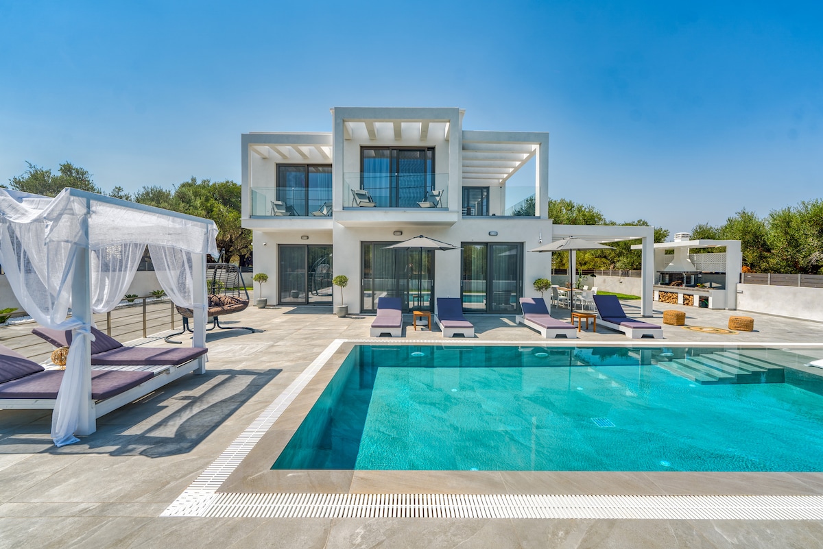 El paraíso privado te espera en AJ Seaview Villa Villa de 4 dormitorios en Tsilivi con piscina privada y vistas impresionantes.** Relájate con estilo con una cocina totalmente equipada, patio, balcón y wifi gratuito. Refréscate en tu piscina privada y relájate rodeado de una belleza pintoresca. Perfecto para familias o grupos. Estacionamiento gratuito. ¡Reserva tu escapada griega inolvidable hoy mismo! (548 caracteres)