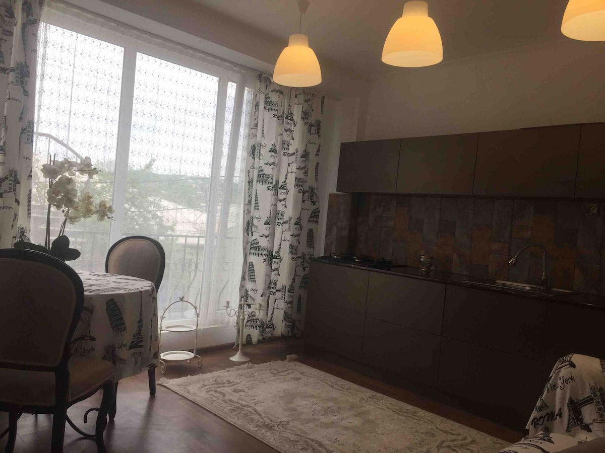 Tu familia estará cerca de todo cuando te hospedes en este lugar céntrico. Está a 20 km del aeropuerto de Kutaisi. A 3 km del centro. A 20 minutos a pie del centro. A 3 minutos en auto. La parada de transporte público está debajo del apartamento. Hay farmacias y supermercados cerca. El departamento cuenta con un balcón con vista a la ciudad. Tenemos traslado al aeropuerto y servicio de automóvil (cargo adicional)