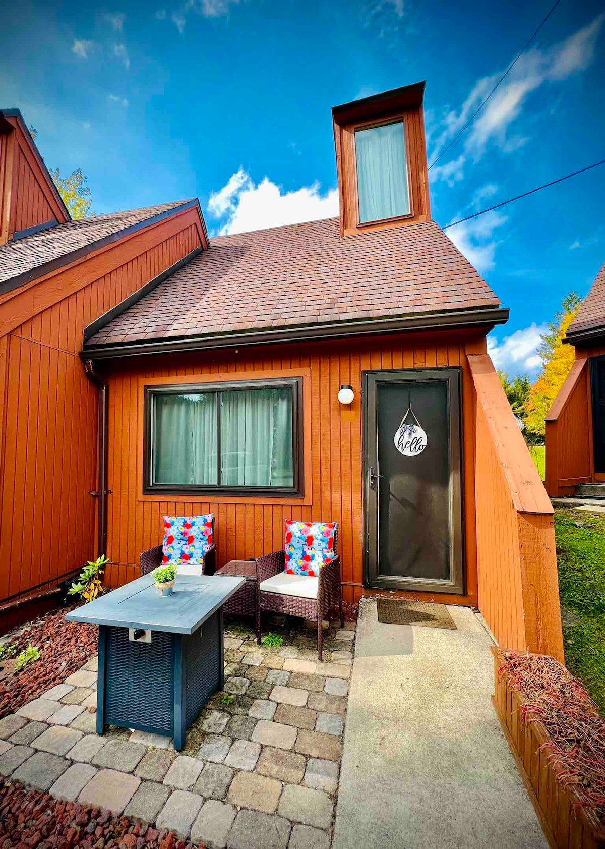 ¡Más de 500 reseñas positivas y contando! Los domingos siempre se hace el check-out después de la hora establecida (7:00 p. m.) para que puedas disfrutar de un día completo. Hermosa cabaña con una gran terraza y todas las comodidades para una escapada relajante a la montaña. Observa a tus hijos en el campo de juegos desde la terraza o ve la increíble exhibición en el cielo nocturno mientras contemplas las estrellas entendiendo por qué la llaman la Vía Láctea. La propiedad está rodeada por todos lados por un refugio de vida silvestre y puedes ver los tres centros de esquí desde la terraza. * Tarifa por mascota de $35