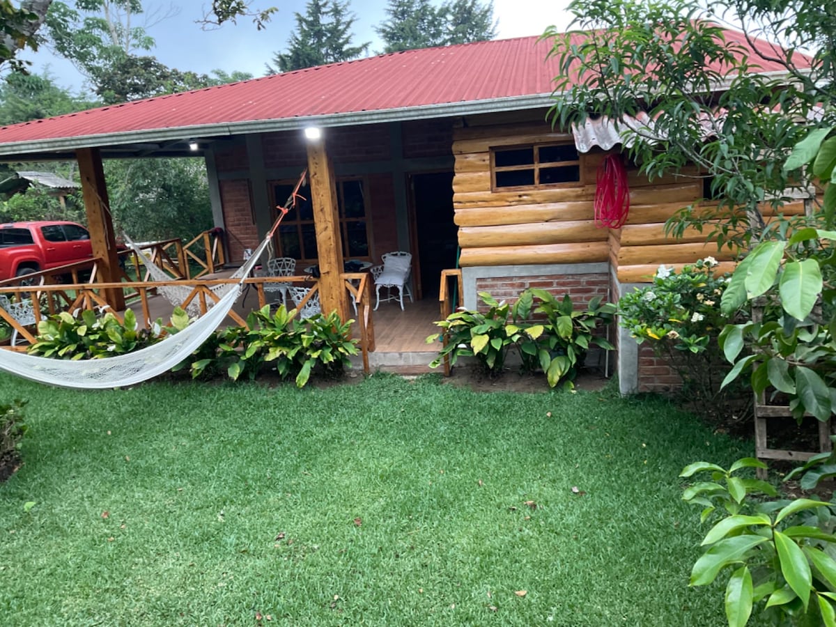 Estancia ubicada dentro de una propiedad privada e independiente, un lugar seguro justo entrando a Apaneca sobre carretera principal accesible a todos los atractivos de la zona, cuenta con 2 camas queen,1 sofá cama, una salita, TV con cable, wifi, baño con agua caliente, cocina tipo chalet equipada con microondas, refri, horno tostador, cocina, cafetera y trastes. además tiene una parrilla afuera y terraza con mesa de madera, hamacas,columpios y fogata. *Personal encargado brinda asistencia.