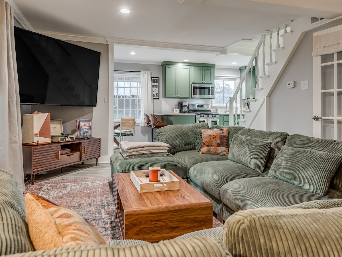 Disfruta de una casa de los años 50 renovada e inspirada en el art déco de Tulsa. Repleto de comodidades, desde una cocina totalmente equipada, camas cómodas y ropa de cama adicional, escritorio para trabajar, 6 plazas de aparcamiento y espacio para una caravana/remolque, patio trasero para entretenerse, comodidades para bebés y niños pequeños, conexiones para vehículos eléctricos y caravanas, juegos y transmisión de TV. Acomodación para una familia o acogedora y perfecta para 1 persona. Muy cerca del centro de exposiciones, hospitales, autopista, centro de la ciudad, centro BOK, Cherry St.el mercado de Mother Road y TU. ¡Reserva tu estancia, nos encantaría hospedarte!