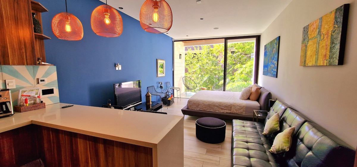¡Toca el ícono del corazón para agregar este loft a tu lista de deseos! Ubicado en el barrio de La Veleta, nuestro loft ofrece internet de fibra óptica rápido para la productividad. Se encuentra a solo 2 cuadras de 7 Sur, la avenida principal rodeada de restaurantes, bares y tiendas y ofrece fácil acceso al centro de la ciudad en 4 minutos y a la playa en 12. Al otro lado de la calle hay un 7 Eleven con un Oxxo a solo una cuadra. Tu guía de llegada incluye una lista de chefs para cenar en el hogar y taxistas/conductores privados para el transporte local y al aeropuerto.