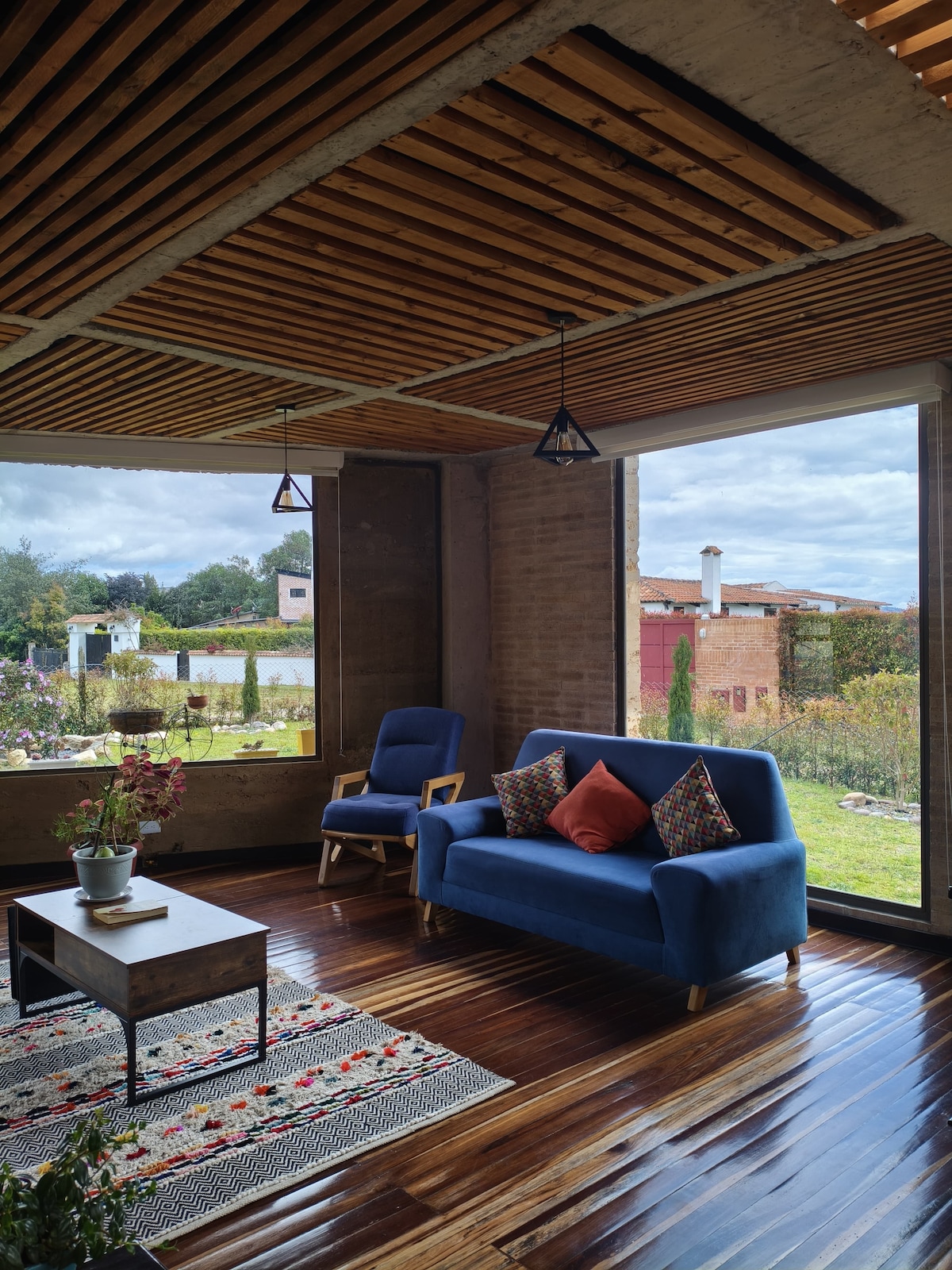 La Casa de la Montaña, es una hermosa Ecovivienda bioclimática, dotada para vivir una experiencia de calidez. Nos ubican en conjunto campestre, con 2 glamping, a 2 horas de Bogota, a 10 min de Tunja y a 3 cuadras del parque principal de Chivata. Tenemos terraza, chimenea, zona de picnic BBQ, ducha elect. Una vista espectacular de las montañas y un area de cañón natural; podrás disfrutar del amanecer y atardecer y una conexión con la naturaleza, pero con la comodidad y el confort de la ciudad
