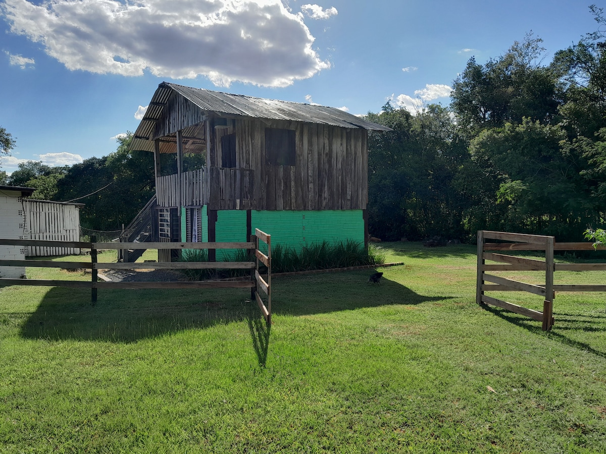 Relájese en este lugar tranquilo, en medio de la naturaleza. Escuche el canto de los pájaros y el sonido de las aguas del río Lajeado Minas. La cabaña está rodeada de vegetación nativa, con acceso al río y tiene senderos. La cocina de la cabaña está completa con utensilios, horno eléctrico, microondas y minibar. La sala de estar tiene un sofá cama, bañera de hidromasaje y TV con acceso a Netflix. Hay una terraza exterior con vistas a la vegetación y al amanecer. En el exterior hay una chimenea de leña y un quiosco con parrilla.