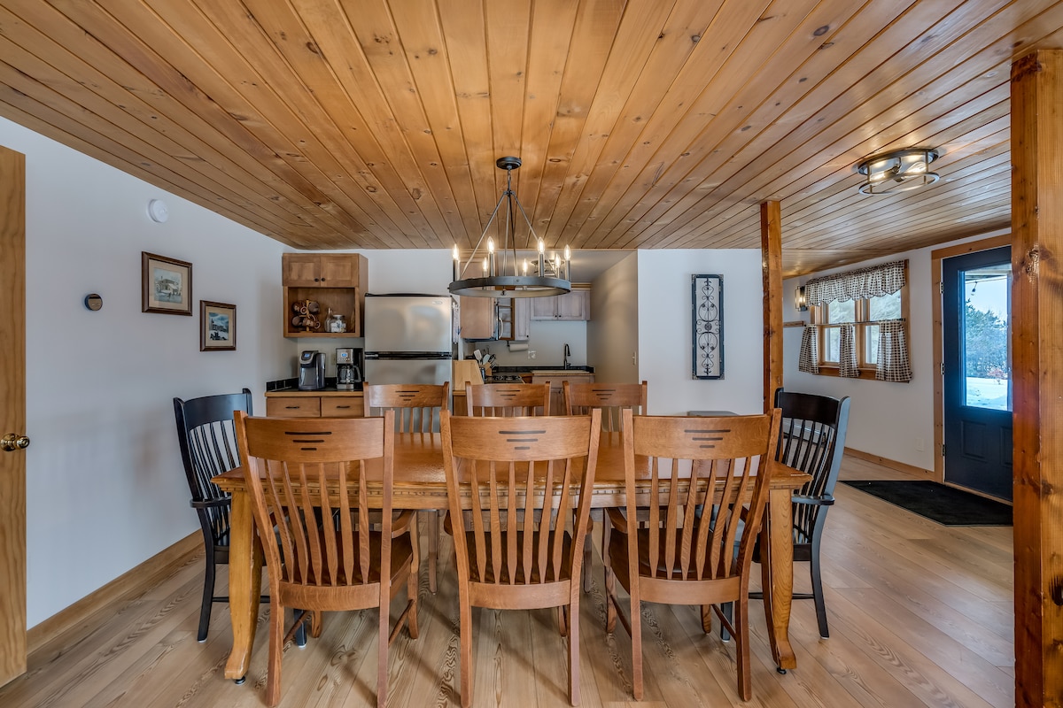 Ubicado justo en las pistas de esquí de la estación de esquí Snow Ridge, este hermoso chalet se encuentra en las laderas, con hermosas vistas a los Adirondacks, a los altos pinos y a las pistas de esquí. Esta propiedad, de más de 3 acres, también cuenta con un amplio camino de entrada para estacionar remolques, acceso directo a las pistas de quad y motonieve de Tug Hill, además de un campo de disc golf contiguo a la propiedad y un área para fogatas al aire libre. Whetstone Gulf State Park, senderismo, golf, Enchanted Forest Water Safari cerca. Excelentes restaurantes cerca y wifi excelente.