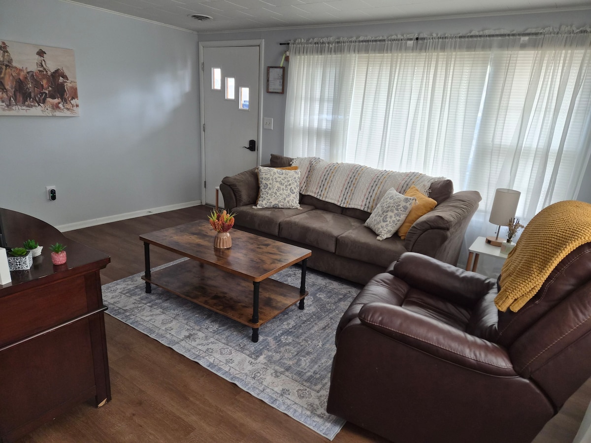 Forget your worries in this spacious and serene home located just a quick drive from Hamilton’s quaint downtown. Whether you’re visiting family, shopping at Missouri Star Quilt Company, or attending a wedding at The Pearl, you’re sure to find everything you need for a wonderful stay. This newly remodeled home features a primary queen bedroom, a second bedroom with two twin beds, a spacious bathroom, fully stocked kitchen, and ample living and dining space. You’ll feel right at home!
