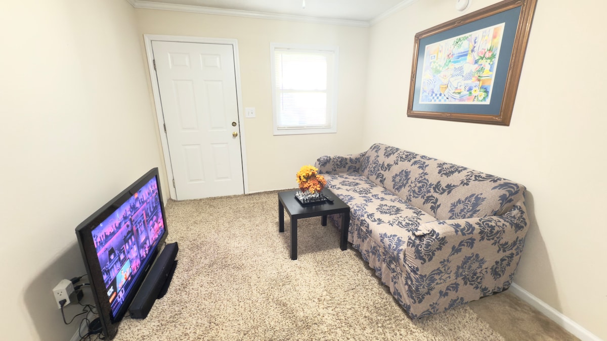 ¡Descubre tu escapada ideal a Tuscaloosa! A solo minutos de la emoción: a 11 minutos a pie (o a 3 minutos en coche) del estadio Bryant Denny y a 8 minutos a pie del Houndstooth Sports Bar. Este acogedor refugio tiene capacidad para 4 personas con una lujosa cama tamaño king de espuma viscoelástica y un cómodo sofá cama. Disfruta de wifi de alta velocidad, TV, cocina totalmente equipada, lavadora y estacionamiento gratuito para 1 coche de tamaño mediano o 2 coches pequeños. Nota: 5 escalones conducen al porche delantero. ¡Perfecto para días de partido, visitas al campus o explorar la vida nocturna!