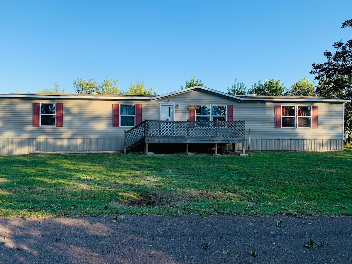 Esta tranquila ubicación te hará relajarte y desconectar en un santiamén. Esta es una verdadera experiencia de cabaña rústica a aproximadamente 1 milla del Parque Estatal George Cossar. Es ideal para cazar, pescar o simplemente relajarse en familia. El parque ofrece un parque infantil, un campo de golf putt putt y un campo de golf de disco. La cabaña tiene 3 dormitorios, sala de estar, cocina y 1,5 baños. El exterior tiene un porche envolvente de 3 lados, un garaje cerrado de 30x40 y una estación de limpieza de pescado. No se permiten fiestas ni eventos.