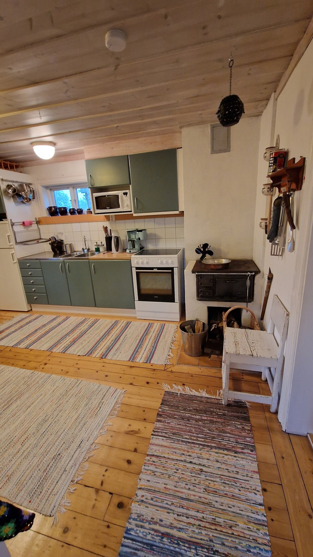 La granja está totalmente equipada, bellamente decorada y tiene un ambiente tranquilo. En la parte antigua, paredes de madera visibles. Varias de las habitaciones tienen vistas al lago. La casa es de 130 metros cuadrados; cocina, baño con calefacción por suelo radiante y agradable ducha. 4 hermosos dormitorios y amplia sala de estar con chimenea. Patio con mesa y sillas, zona de parrilla con vistas al lago y trampolín para niños en verano. En el lago, hay una sauna de leña para alquilar y un bote de remos para pedir prestado. Se pueden alquilar sábanas y toallas. Se puede reservar la limpieza. También hay una casa de campo para 2 personas disponible en alquiler.