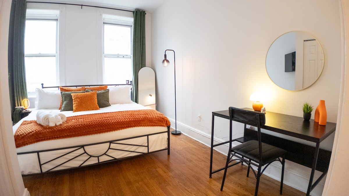 Hoboken fue clasificada como la mejor ciudad pequeña para vivir en Estados Unidos y la más transitable. La moderna ciudad se encuentra justo enfrente de Nueva York, con el majestuoso río Hudson en el medio. Tiene los viejos encantos de una ciudad histórica, con emocionantes actividades de estar en una ciudad sin todo el caos de vivir en Nueva York. Nuestra casa de piedra rojiza de Airbnb se encuentra en una tranquila zona residencial de Hoboken, perfectamente situada para caminar y reconectar con tu familia, amigos y conocidos de negocios.