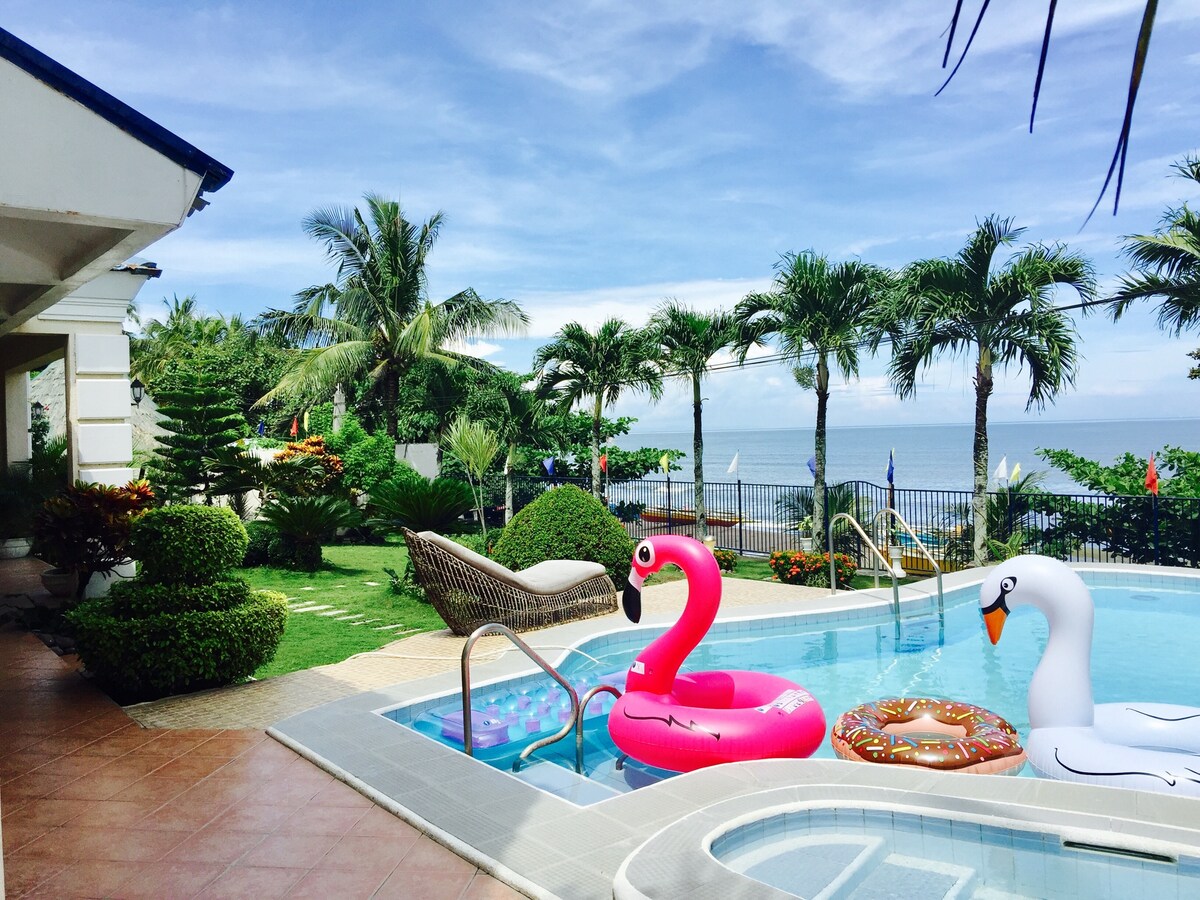 Escápate a un refugio de lujo incomparable en el corazón de la ciudad de Bacolod en esta villa de 4 dormitorios frente al mar ubicada en una exclusiva comunidad de centros vacacionales. Disfruta de impresionantes puestas de sol desde tu oasis privado. Disfruta de piscinas, saborea batidos de mango y relájate con televisores inteligentes, aire acondicionado, internet de fibra rápida y sofás de cuero reclinables. Cocina totalmente equipada, barbacoa y exuberante patio con árboles frutales. Siéntete seguro con guardias y cámaras las 24 horas, los 7 días de la semana. Tu inolvidable escapada a Bacolod te espera. ¡Reserva ya y disfruta de la felicidad costera!