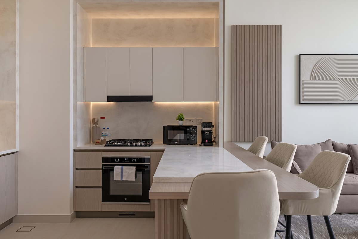 Bienvenido a Aura Arabia, una suite privada para huéspedes con su propia entrada y cocina totalmente equipada, inspirada en la decoración turca, marroquí y de Oriente Medio. Ideal para familias, grupos y parejas, cuenta con 1 cama tamaño king, 1 sofá cama tamaño king y 1 sofá cama individual, con capacidad para 5 huéspedes. 📍 Ubicación privilegiada • A 10 minutos del centro de la ciudad. • A 10 minutos de Business Bay o Onpassive Metro. • A 7 minutos del centro comercial Oasis. • A 3 minutos a pie de las paradas de autobús. Comodidad, estilo y conveniencia para tu estancia en Dubái. ✨