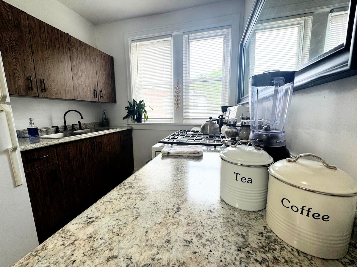 Relájese en el corazón de Soulard, a pocos pasos de los mejores bares, restaurantes y del emblemático mercado de agricultores. Este acogedor alojamiento de 1 habitación combina el encanto rústico con el confort moderno y cuenta con una lujosa cama tamaño queen con sábanas de primera calidad, wifi de fibra rápida, cocina completa con cafetera Keurig y lavadora y secadora en la unidad. Es amplio, accesible a pie (puntuación de 89) y perfecto para una escapada de fin de semana o para trabajar a distancia. ¡Reserva ahora!